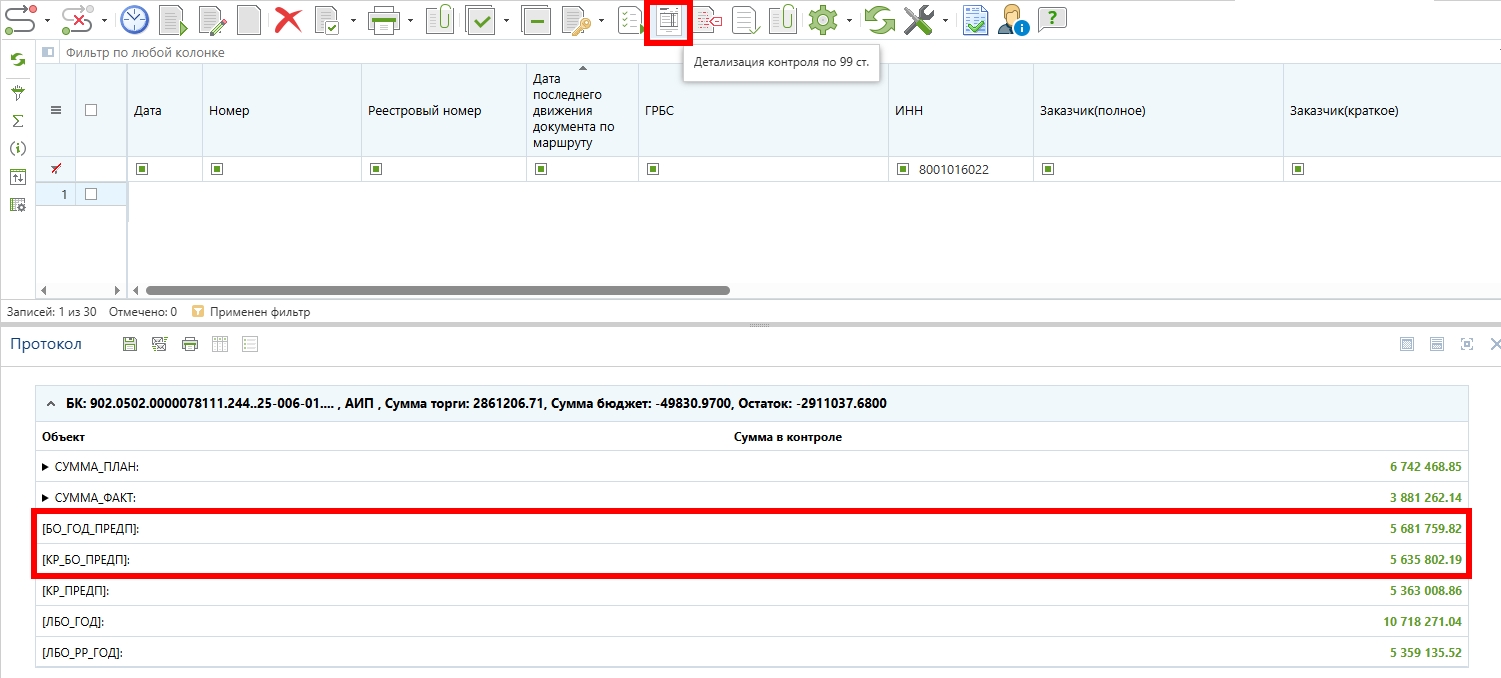2.9 Проверка лимитов по детализации контроля по ст.99